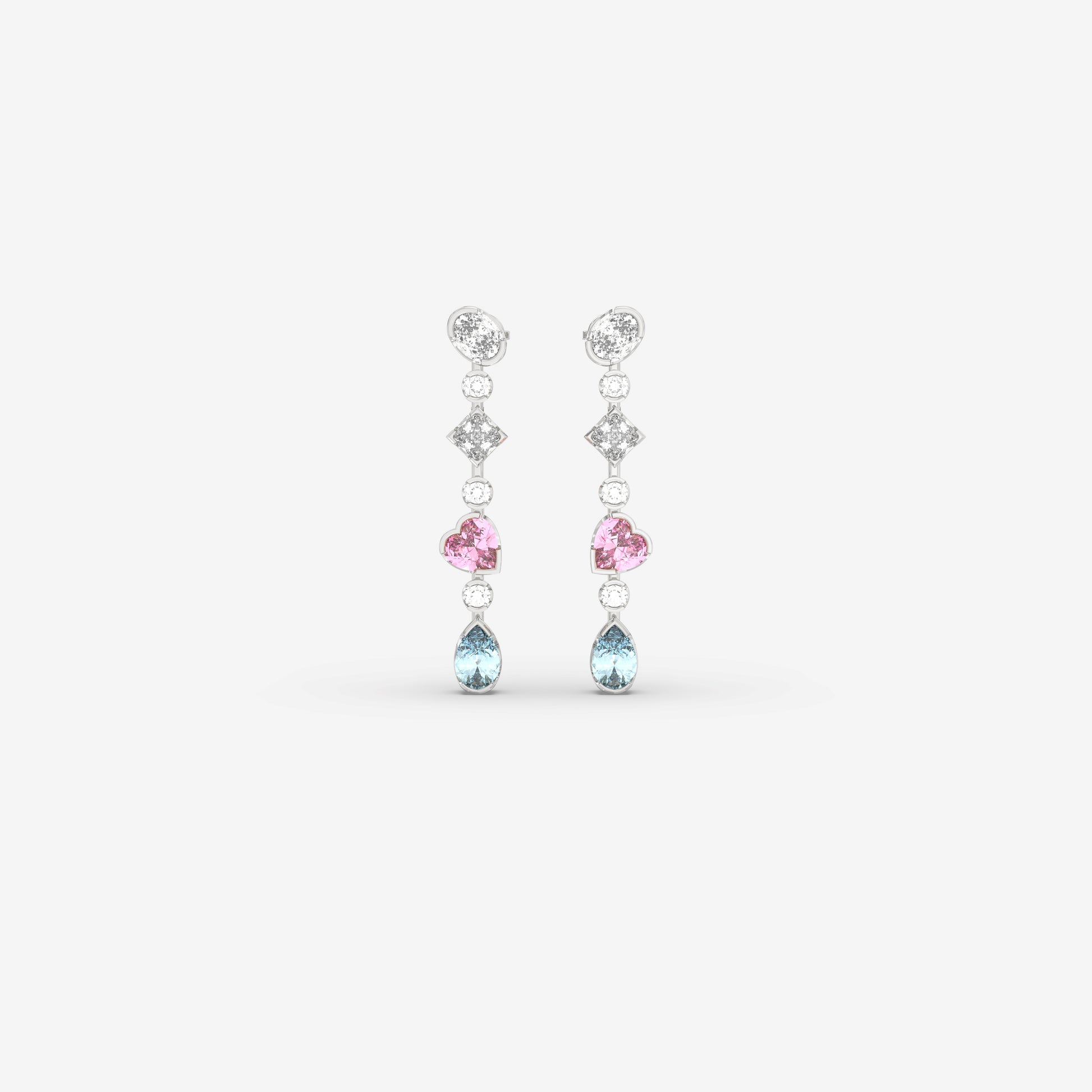 Inspired by the beauty of color, this earring features heart-shape pink sapphires and serene blue aquamarines that evoke a romantic touch, perfect for those who embrace life’s vivid moments. This piece celebrates individuality and timeless beauty, offering a refined expression of passion and joy through its delicate yet striking hues.