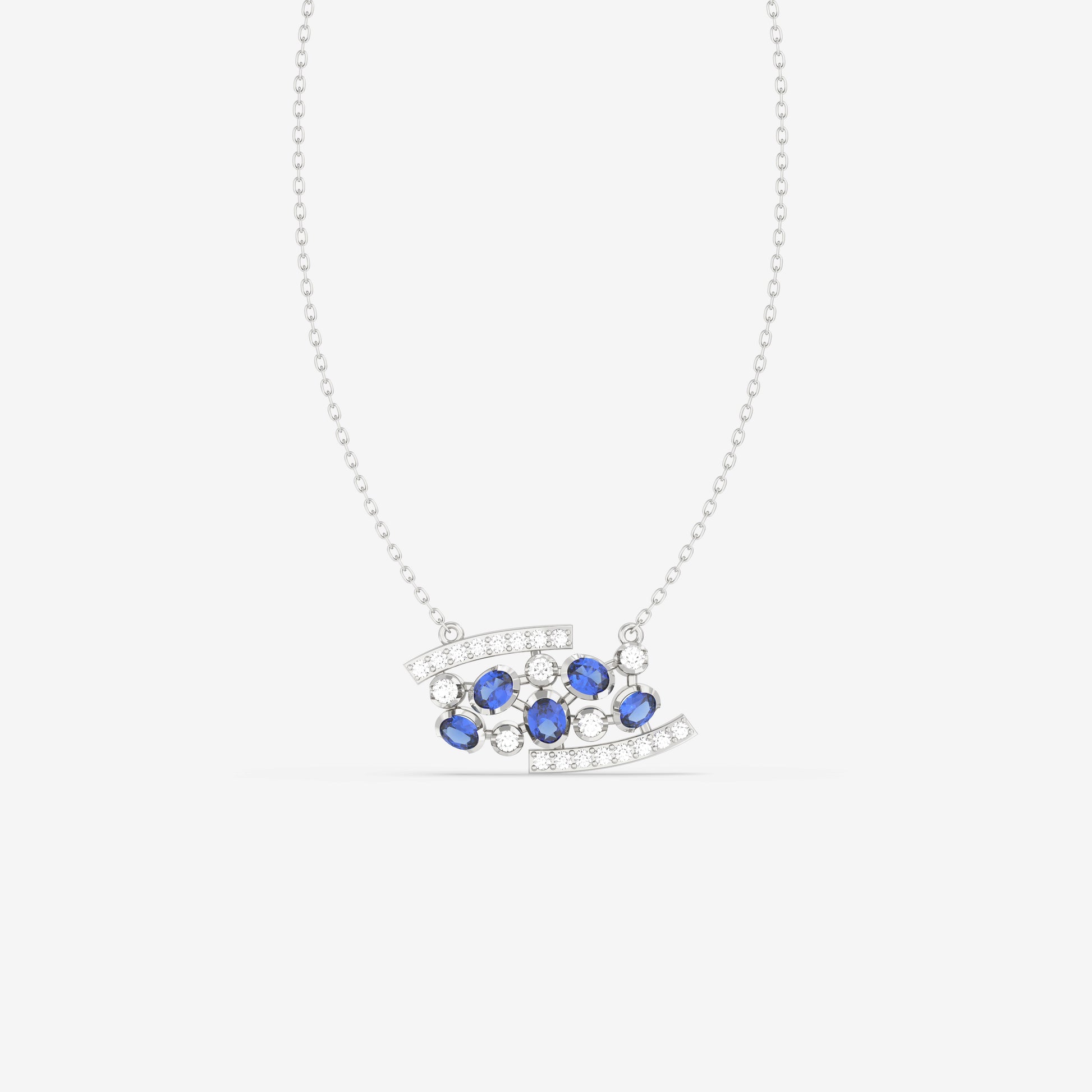 From the Romantic Hues Collection, this pendant is a celebration of elegance and sophistication. The round diamonds captivate the gaze, while the oval blue sapphires are artfully scattered, adding delicate whispers of refinement. This pendant radiates timeless charm, embracing a classy allure that honors the beauty of vibrant hues. It’s perfect for those who cherish the elegance of colorful gemstones.