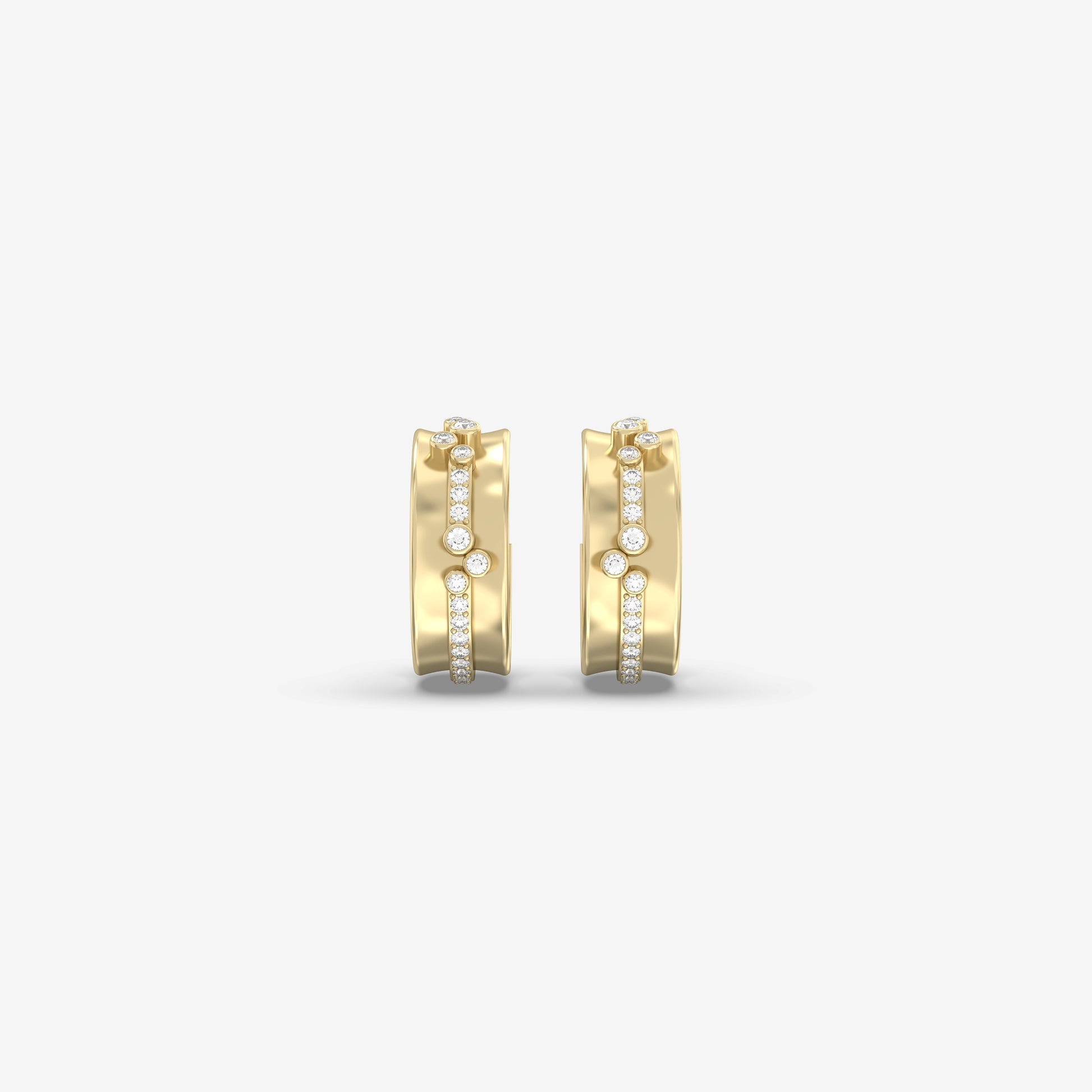 These modern earrings are the epitome of refined style, blending exceptional craftsmanship with versatile wearability. The radiant diamonds stand out against the smooth, polished gold, creating a stunning contrast. Their brilliant sparkle catches and reflects light beautifully, while the warm, luxurious glow of the gold enhances their dazzling effect. Together, these elements form a harmonious balance of brilliance and elegance, making these earrings a perfect choice for both everyday wear and special occasions.