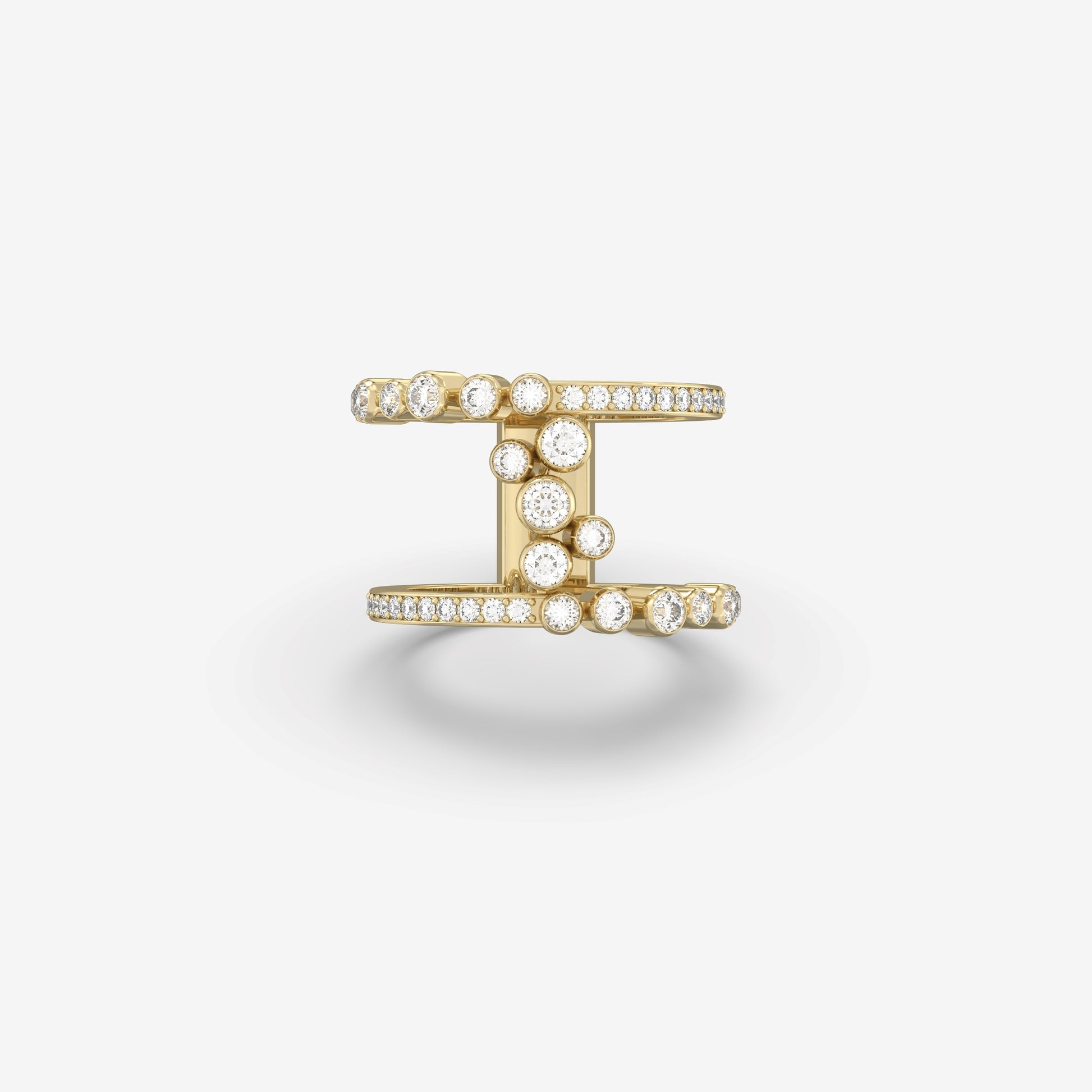 Experience elegance in every glint with round diamond bezels scattered and complemented by the timeless brilliance of pave diamonds. The ring is a perfect blend of modern design and radiant beauty.