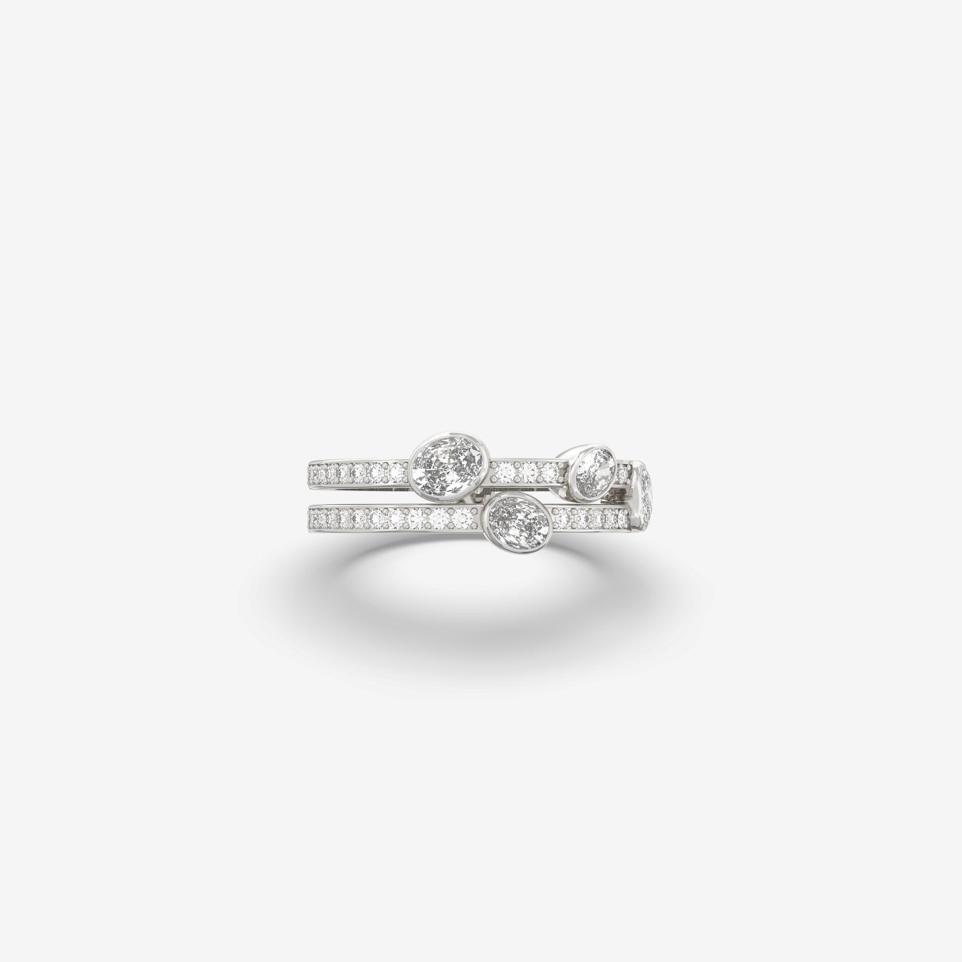 Sparked with elegance, this ring features two rows of round diamonds paired with oval diamonds, making it a perfect choice for those who desire both timeless beauty and a unique design.
