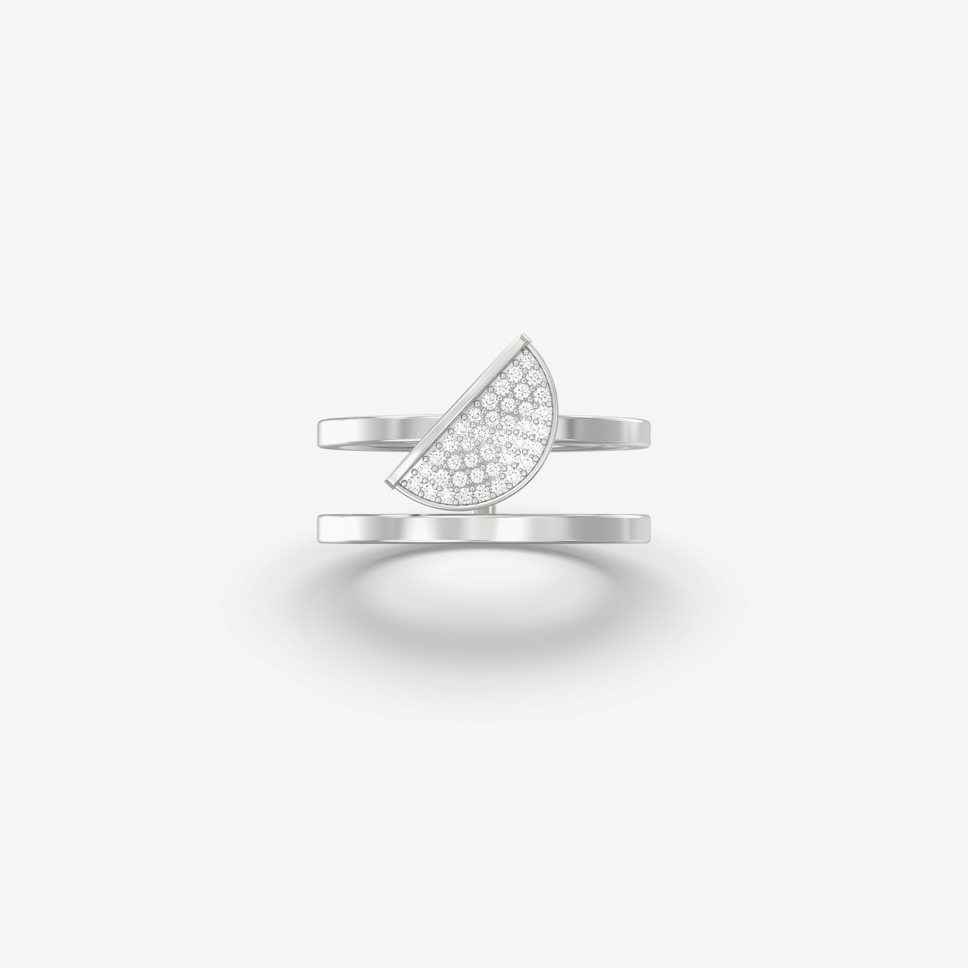 Add an extra touch of sparkle with these pavé-set round diamonds that glimmer like stars against the dark, capturing the mystique of moonlight.A perfect ring and a luminous reminder of love that shines through every phase of life.