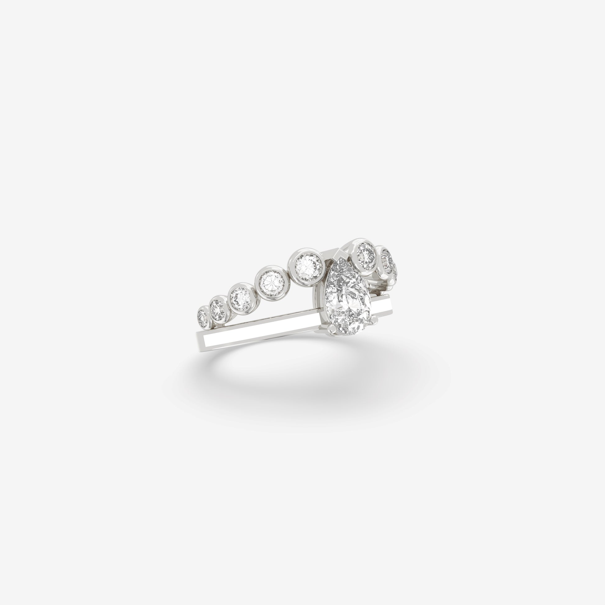 This pear-shaped diamond engagement ring is a masterpiece of modern elegance. The smooth bezel setting and shimmering pavé work in perfect harmony, creating a ring that is both timeless and contemporary. Whether worn day or night, this ring reminds you to carry the magic of the stars wherever you go.